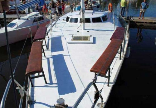 Участники фуршета или банкета могут удобно устроиться в кают-компании, выдержанной в красных тонах, или на верхней палубе, прикрытой тентом от прямых лучей солнца. Скучать на яхте не придётся. Для гостей установлен музыкальный центр, а любители активного отдыха могут воспользоваться спортивным инвентарём. Те, кто хочет просто отдохнуть, отправляется в каюты со спальными местами.